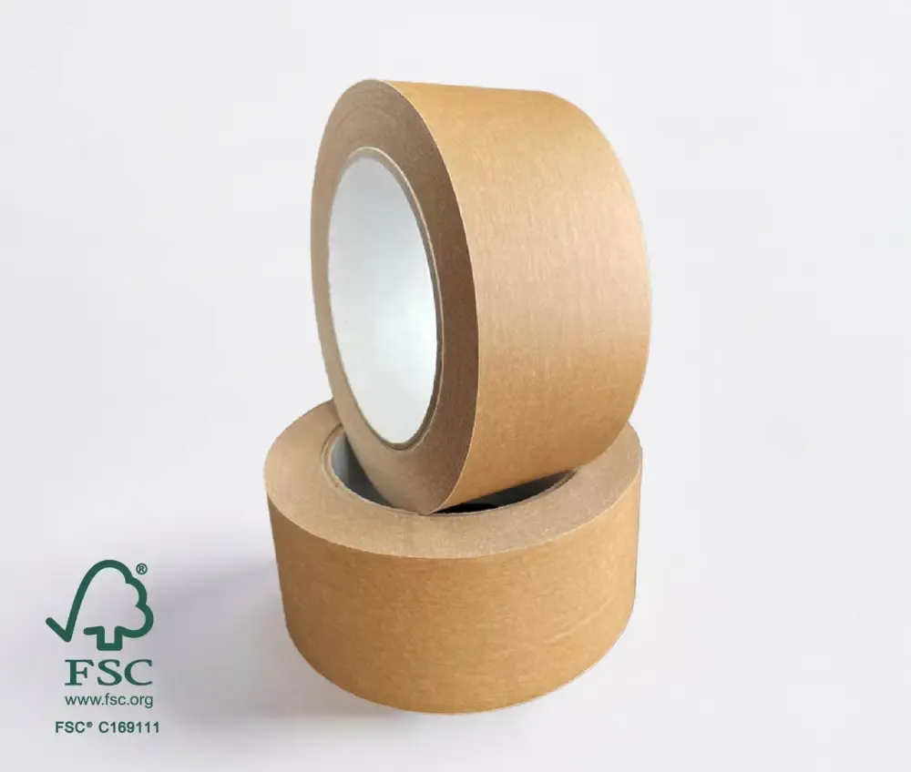 FSC certified kraft paper tape for medium and heavy duty box sealing. It has a natural rubber adhesive from FSC certified forestry which displays excellent adhesion characteristics to most surfaces. FSC certification means this tape was made with paper from sustainable forests where carbon emissions are managed responsibly. Embrace sustainability with this eco packaging tape.